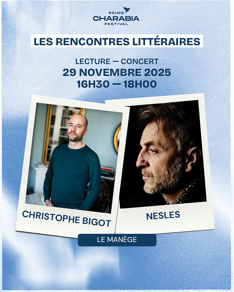 Le 29 novembre 2024 Christophe Bigot recevait le prix de la biographie romancée Geneviève Moll pour « Un autre m’attend ailleurs ». Un an plus tard il est présent aux rencontres littéraires du charabia festival en compagnie du chanteur/musicien Nesles pour cette lecture musicale. Christophe Bigot avec beaucoup d’émotions, force détails et avec une empathie proche de l’admiration y raconte le dernier amour de Marguerite Yourcenar avec Jerry Wilson photographe homosexuel de 46 ans son cadet, au moment même où elle devient la première femme à entrer à l’Académie française et que sa compagne d’une vie, l’américaine Grace Frick meurt. « Tout y est vrai » déclarait-il sur France Inter qui ose un « Il lui redonne sa chair et son âme de midinette » Quand on lit cette histoire la précision est utile tant cette tranche de vie de l’autrice des « Mémoires d’Hadrien » est romanesque à souhait. Christophe Bigot avoue volontiers que Yourcenar occupe une place spéciale dans sa vie, lui l’enseignant à Janson-de-Sailly, auteur de sept livres plusieurs fois primés, dont deux sous couleurs de Révolution française.